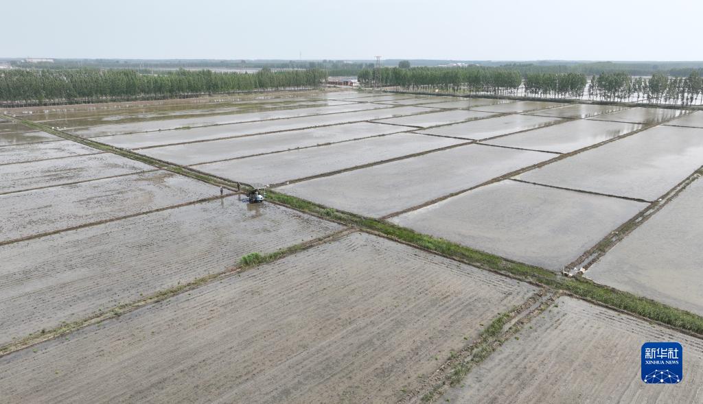 5月18日在河北唐山豐南區岔河鎮楊義口頭一村拍攝的水稻田(無(wú)人機照片)。