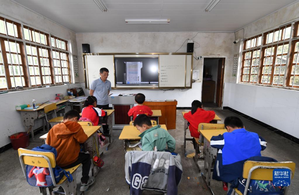 5月18日,在廣西靈川縣蘭田瑤族鄉深潭教學(xué)點(diǎn),趙洪老師在給學(xué)生上課。