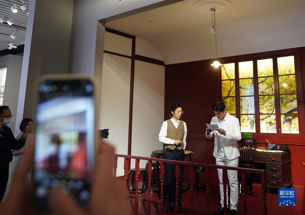 5月18日晚,中共一大紀念館原創(chuàng )的情景黨課《又見(jiàn)新青年》在展廳內實(shí)景演出。