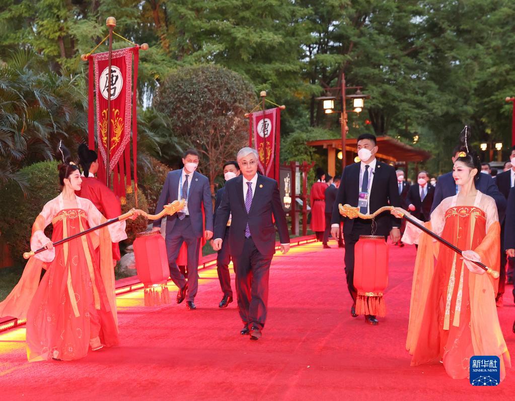 5月18日晚,出席中國-中亞峰會(huì )的中亞國家元首夫婦陸續抵達陜西省西安市大唐芙蓉園,參加在這里舉行的歡迎儀式。這是哈薩克斯坦總統托卡耶夫抵達。新華社記者 徐子鑒 攝