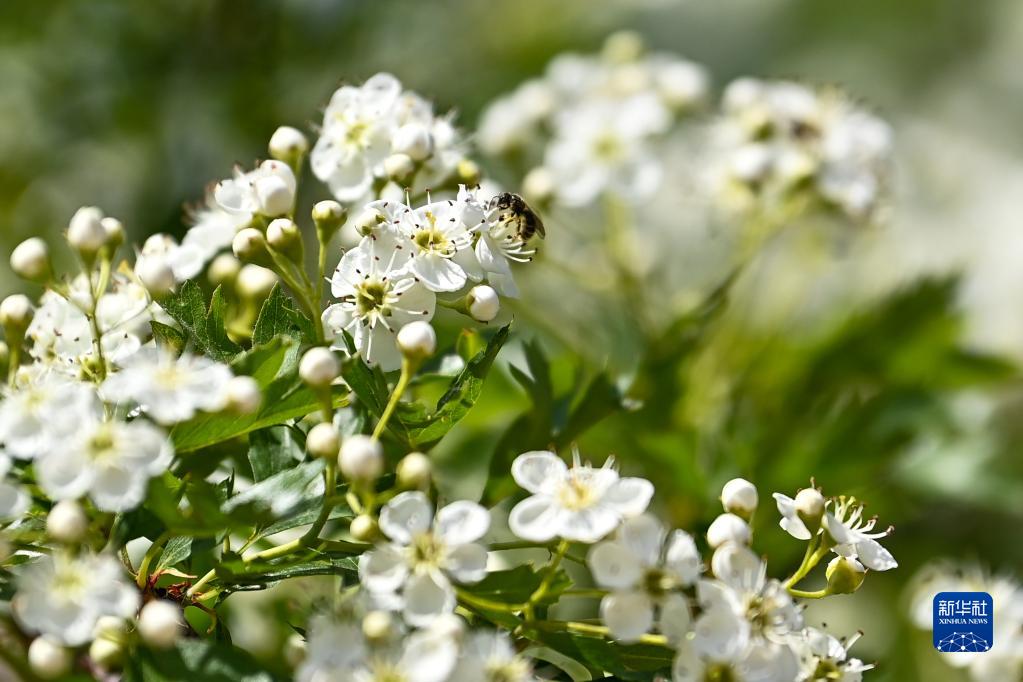 這是在新疆伊犁哈薩克自治州霍城縣中華福壽山景區拍攝的野山楂花(5月17日攝)。