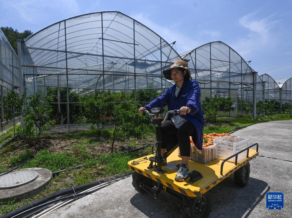 5月19日,建德柑橘科技小院基地的工作人員搬運剛采摘下來(lái)的柑橘。