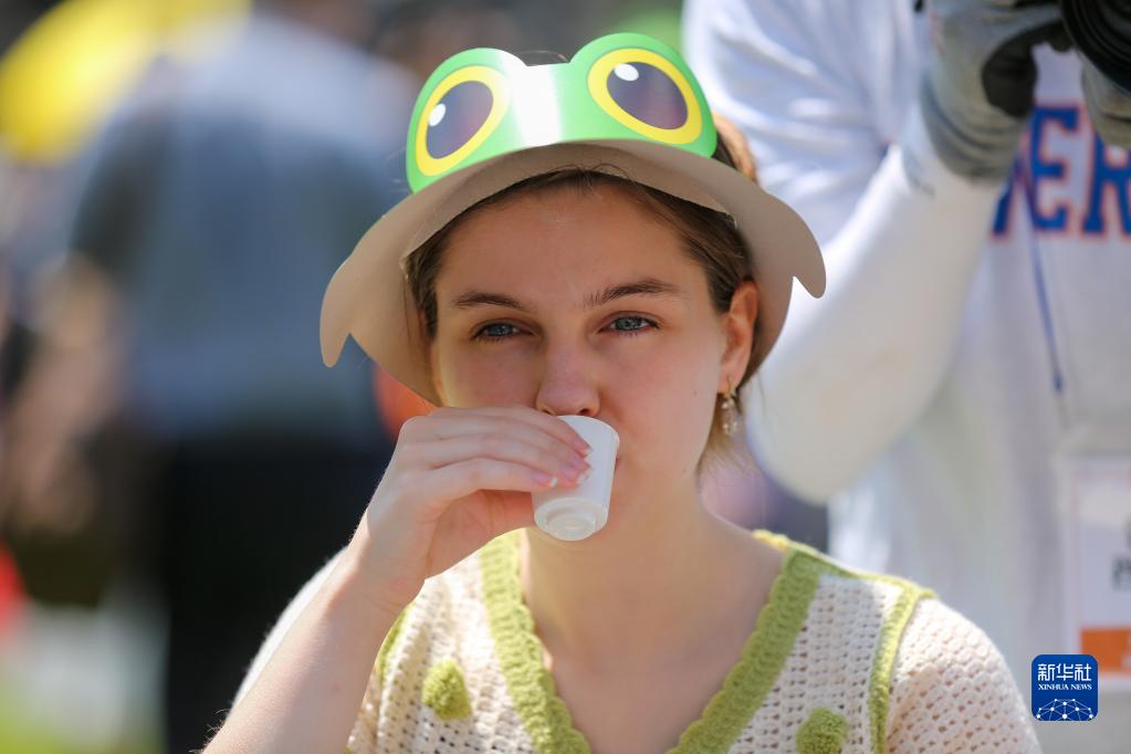 5月19日,游客在韓國首爾廣場(chǎng)品嘗中國茶。
