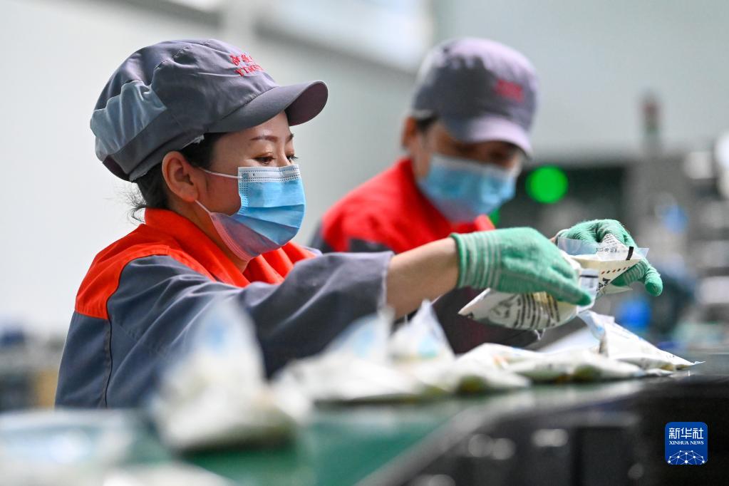 在位于新疆伊寧市的伊犁伊牧欣乳業(yè)有限公司,工人在包裝車(chē)間忙碌(5月19日攝)。