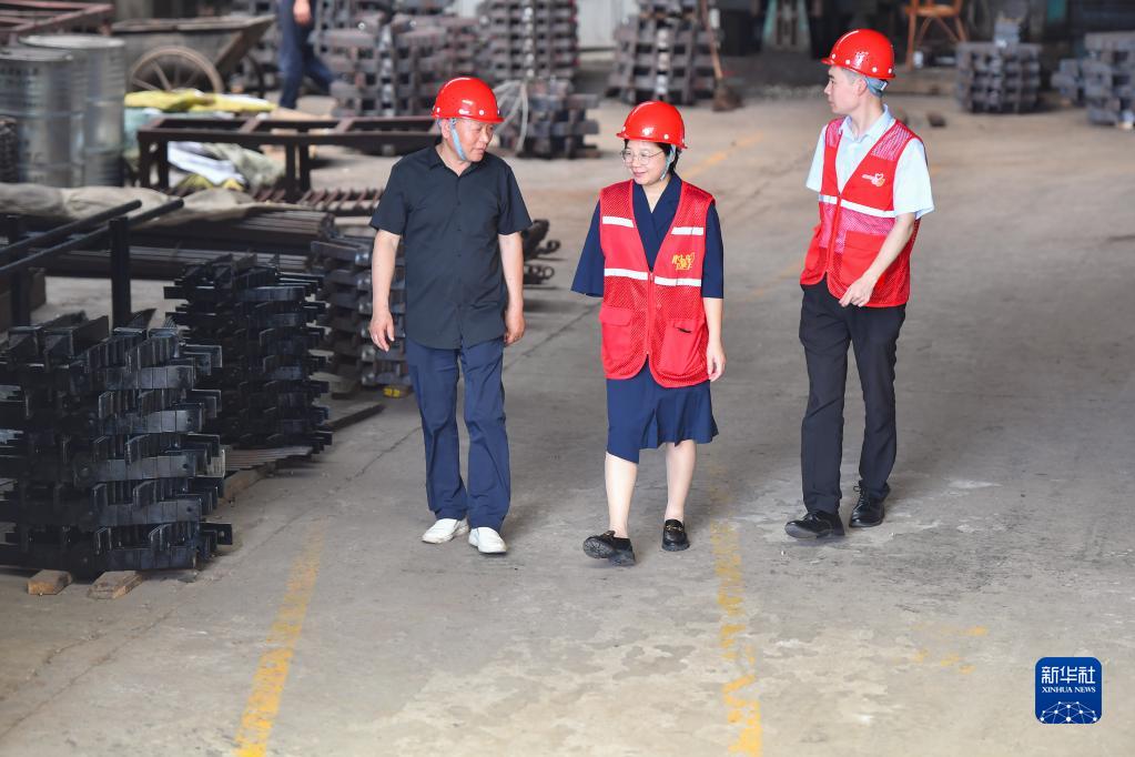 在湘潭市岳塘區一個(gè)殘疾人集中就業(yè)示范基地,扶婷(中)和法律志愿服務(wù)團成員為企業(yè)提供免費法律咨詢(xún)服務(wù)(5月18日攝)。