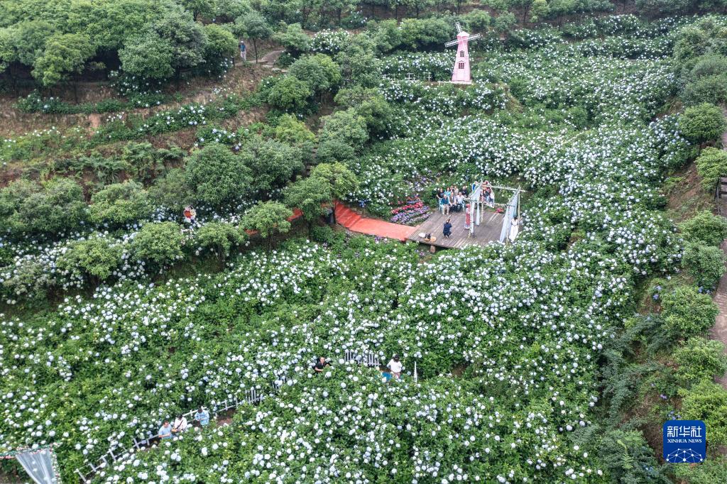 這是5月20日在柏樹(shù)村拍攝的繡球花(無(wú)人機照片)。