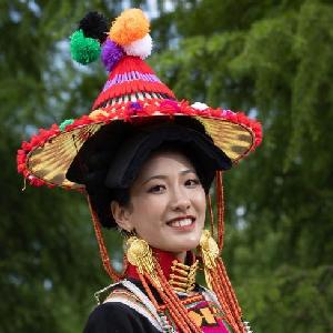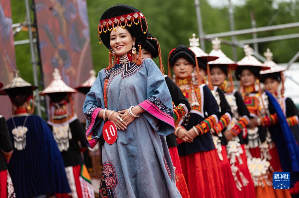 5月20日,彝族姑娘展示傳統服飾。