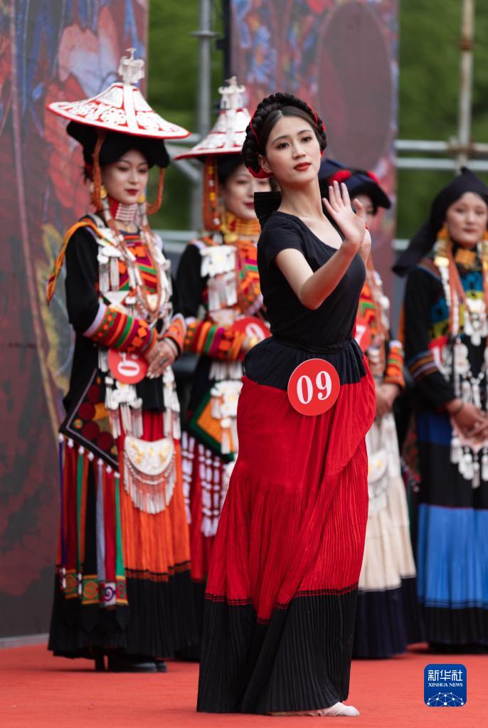 5月20日,彝族姑娘王思雨在展示才藝,她獲得“銀索瑪”獎。