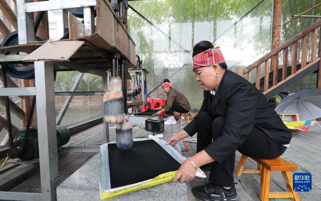 5月20日,工人在貴州省黔東南苗族侗族自治州施秉縣桃子灣工業(yè)園區一家服飾生產(chǎn)企業(yè)加工布料。