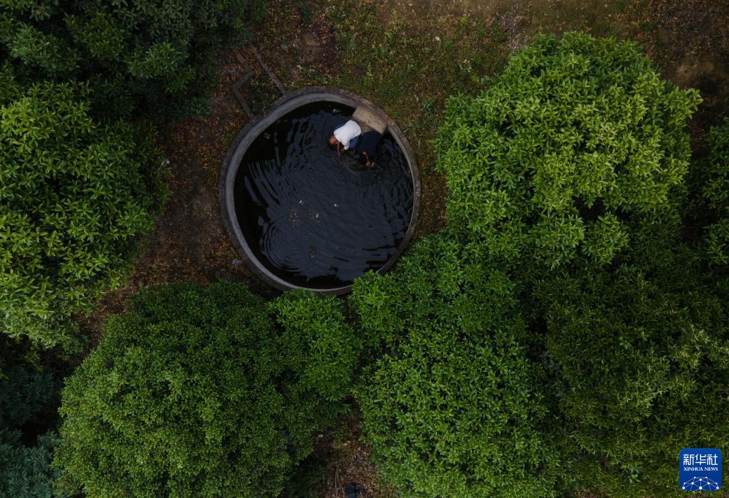 5月14日,在四川省榮縣東興鎮長(cháng)興林場(chǎng),李光金(李秀雄二兒子)和一名工人在水池中洗手。李秀雄一家在山上修建了2個(gè)水塘、20多個(gè)水池以供生產(chǎn)用水。