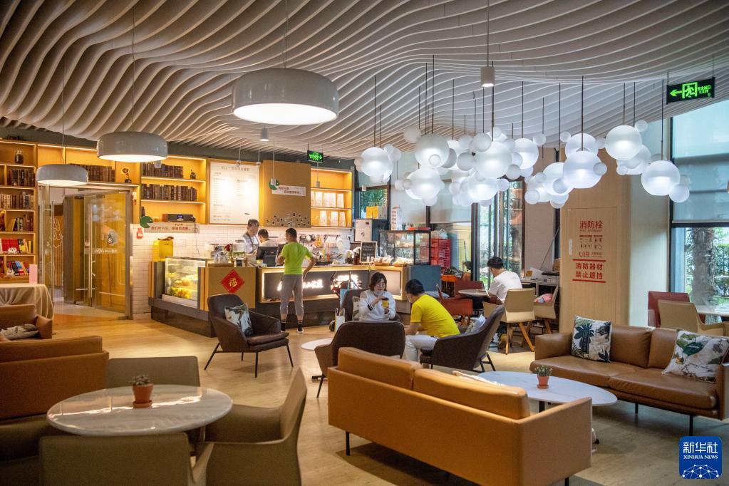 5月21日,顧客在位于重慶市渝北區松山醫院內的一角咖啡廳內品嘗咖啡。