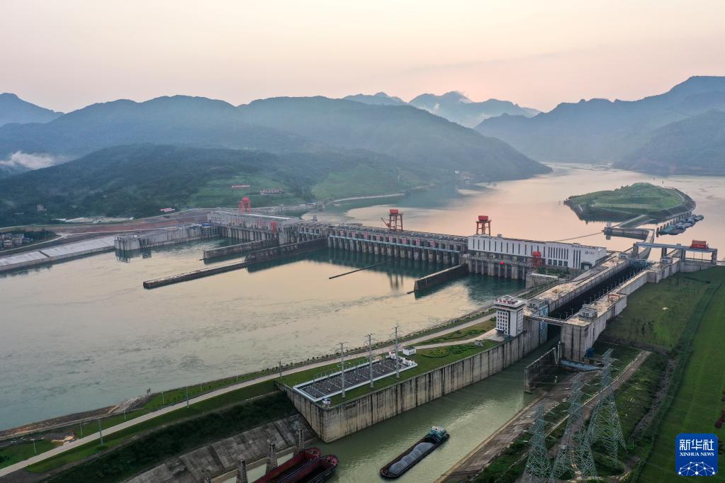 這是5月20日拍攝的建設中的廣西大藤峽水利樞紐工程(無(wú)人機照片)。