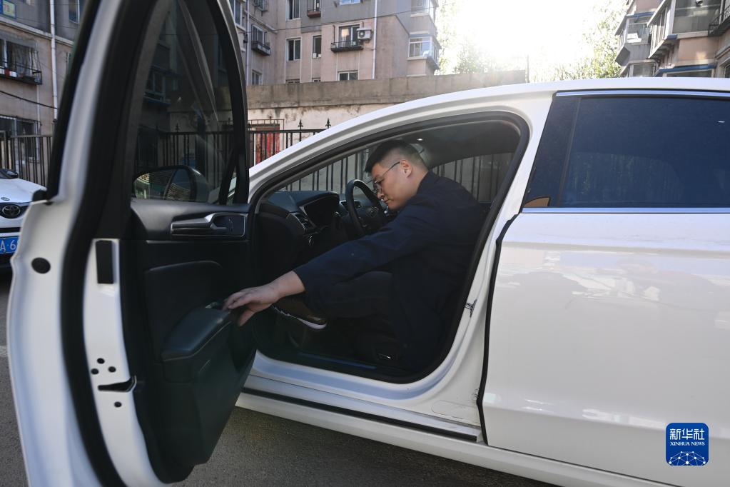在陽(yáng)光家園門(mén)前的停車(chē)場(chǎng),趙強準備開(kāi)車(chē)回家(4月18日攝)。