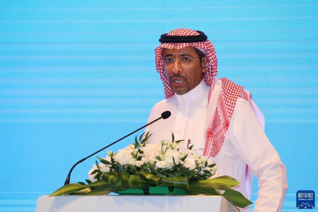 5月21日,在沙特利雅得,沙特工業(yè)和礦產(chǎn)資源大臣班達爾·胡拉耶夫在中國-阿拉伯國家博覽會(huì )推介會(huì )上致辭。