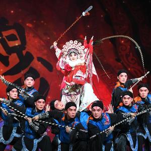 5月21日晚,演員在第九屆中國戲劇獎頒獎典禮上表演婺劇《穆桂英大破天門(mén)陣》選段。