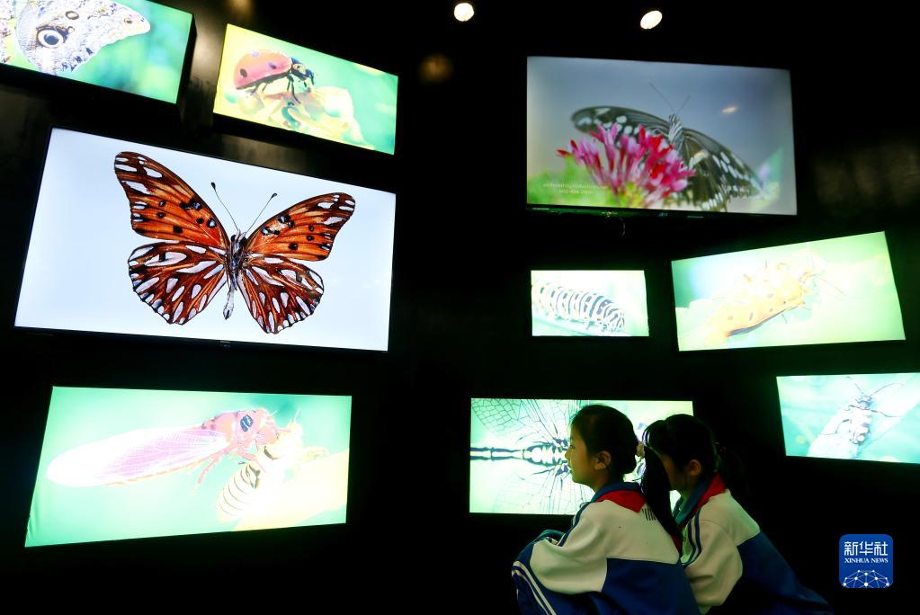 5月22日,小學(xué)生在中國農業(yè)科學(xué)院青島特種作物研究中心試驗基地學(xué)習昆蟲(chóng)知識。