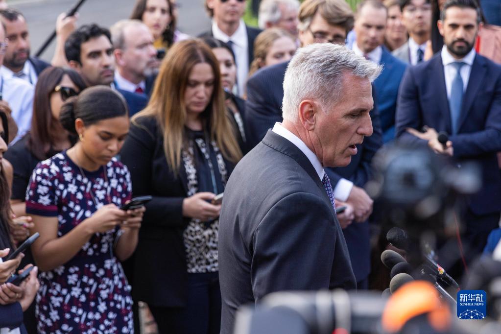 5月22日,在美國華盛頓白宮,國會(huì )眾議長(cháng)、共和黨人凱文·麥卡錫就債務(wù)上限問(wèn)題與美國總統拜登談判后回答記者提問(wèn)。