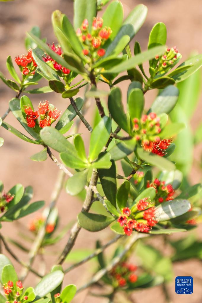 近日,在海南東寨港國家級自然保護區里的瀕危紅樹(shù)植物紅欖李迎來(lái)花期。據悉,紅欖李是珍稀瀕危紅樹(shù)植物、國家一級保護植物,被譽(yù)為紅樹(shù)林中的“大熊貓”。國內一度僅存14株。2014年,海南東寨港國家級自然保護區管理局成功培育出紅欖李幼苗,并建立紅欖李野外種植基地。如今這里已有超過(guò)20畝、約2300株的紅欖李。