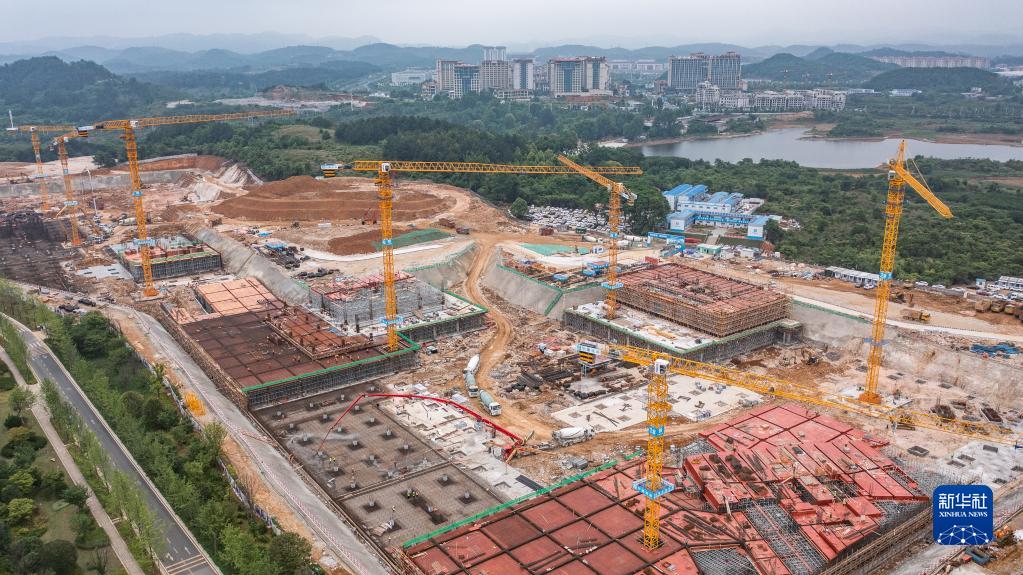 建設中的貴安華為云數據中心全球指揮中心項目(5月23日攝,無(wú)人機照片)。