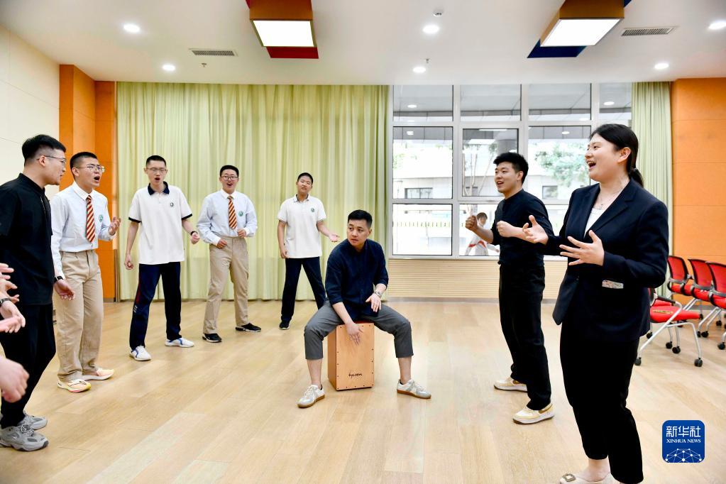 5月23日,在省濟南市歷城二中聞韶藝術(shù)館,老師和同學(xué)們在練習小合唱。