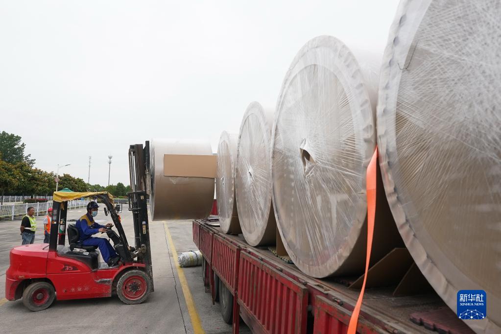 5月24日,在下蜀高新技術(shù)產(chǎn)業(yè)園內的一家石膏板生產(chǎn)企業(yè),工人在運送原材料。