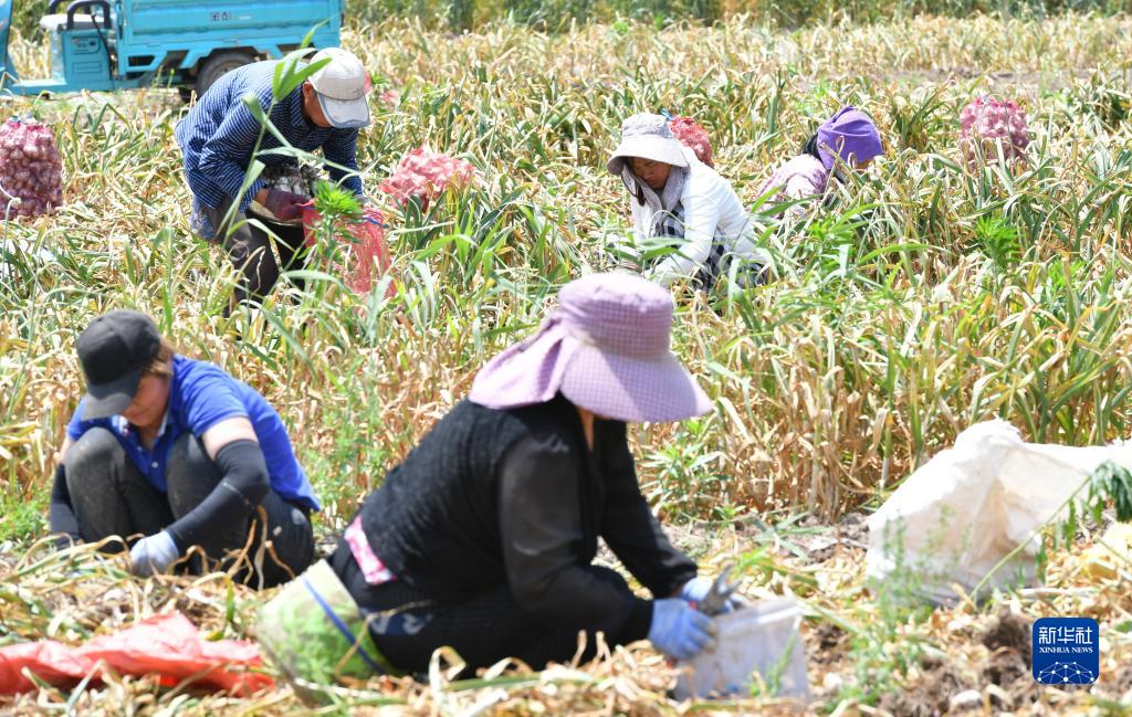近日,河南省鄭州市中牟縣的大蒜迎來(lái)收獲季。據了解,今年中牟縣大蒜種植面積24.7萬(wàn)畝,將于月底結束收獲。