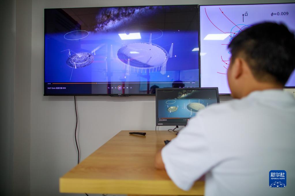 5月23日,工作人員在貴州大學(xué)省部共建公共大數據國家重點(diǎn)實(shí)驗室對“中國天眼”相關(guān)課題進(jìn)行研究。