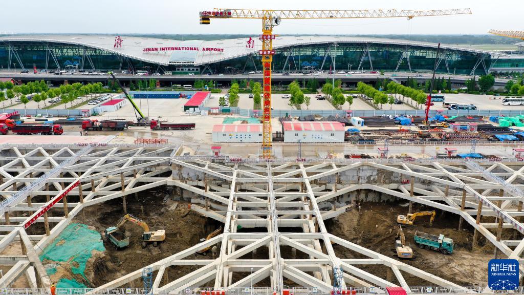 5月25日拍攝的濟南遙墻機場(chǎng)綜合交通樞紐工程施工現場(chǎng)。