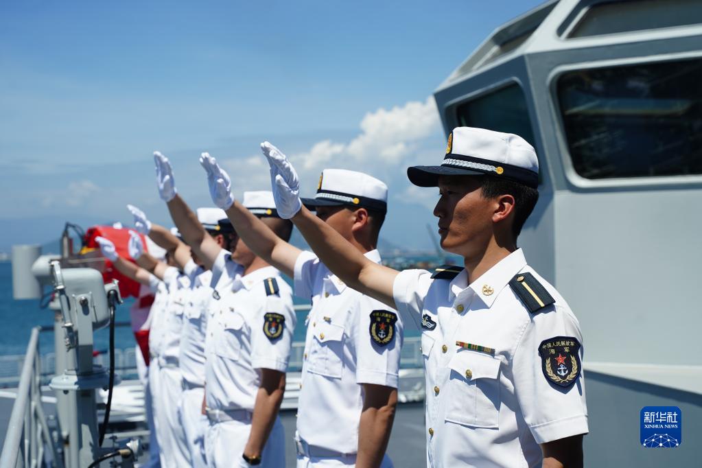 5月25日,在越南峴港,戚繼光艦官兵向送行人員揮手告別。