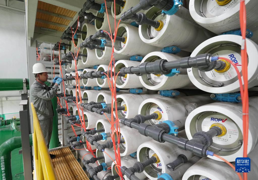 5月25日,工人在唐山市海港經(jīng)濟開(kāi)發(fā)區海水淡化項目投產(chǎn)的淡水生產(chǎn)車(chē)間工作。