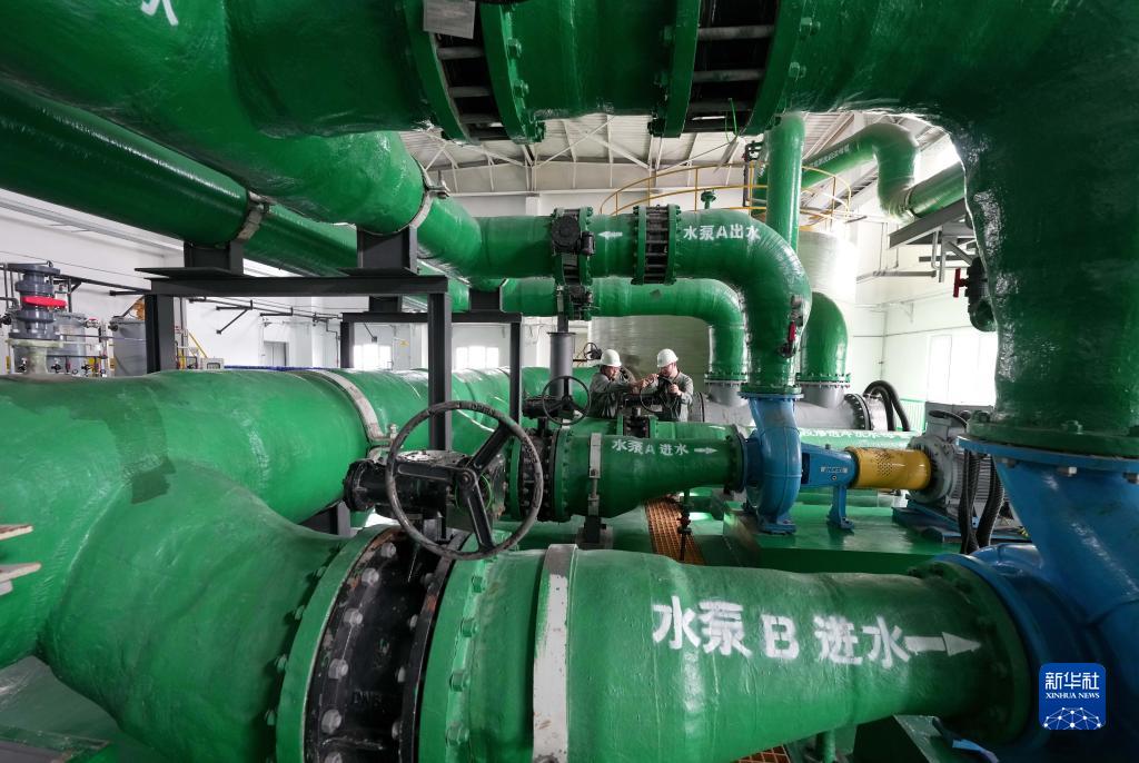5月25日,工人在唐山市海港經(jīng)濟開(kāi)發(fā)區海水淡化項目投產(chǎn)的淡水生產(chǎn)車(chē)間工作。
