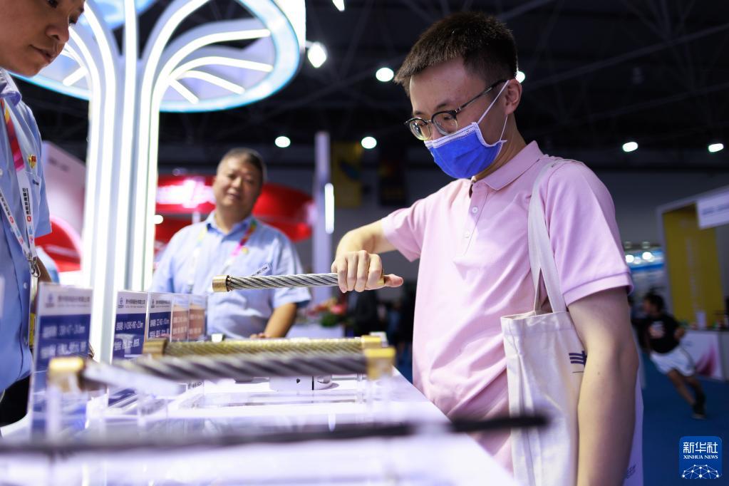 5月26日,觀(guān)眾在數博會(huì )現場(chǎng)參觀(guān)特種鋼繩。