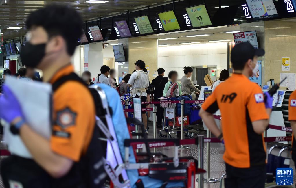 這是5月26日拍攝的韓國大邱機場(chǎng)值機區域。
