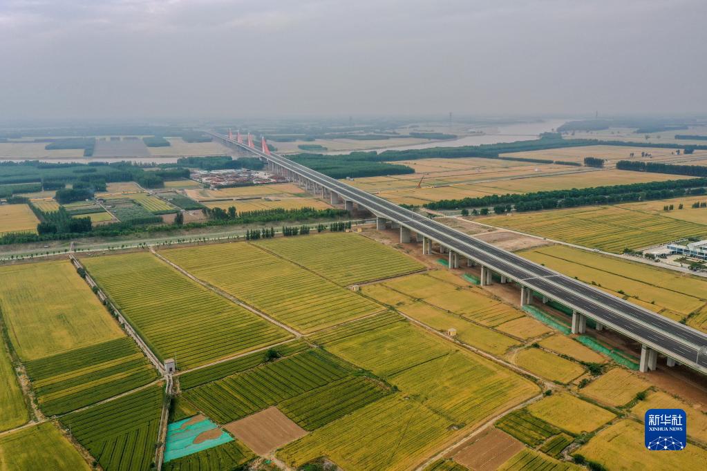 山東濟南:黃河灘區遷建復墾土地小麥收獲在望