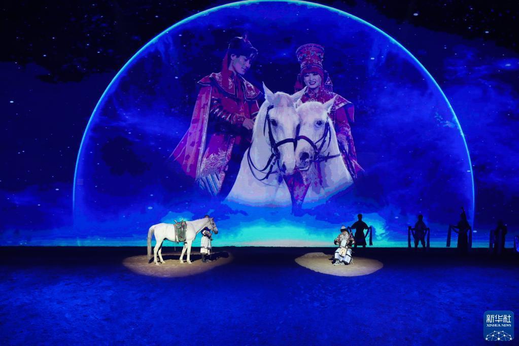 當日,由內蒙古民族藝術(shù)劇院出品的2023年大型馬舞劇《千古馬頌》在呼和浩特上演。該劇以馬術(shù)表演為主,綜合運用了舞蹈、器樂(lè )、雜技等藝術(shù)元素,融合了現代高科技舞臺技術(shù),以全新藝術(shù)形式生動(dòng)演繹了人與馬相遇、相識、相伴、不離不棄、生死與共的情感歷程,體現了人、馬與自然和諧共存的精神。