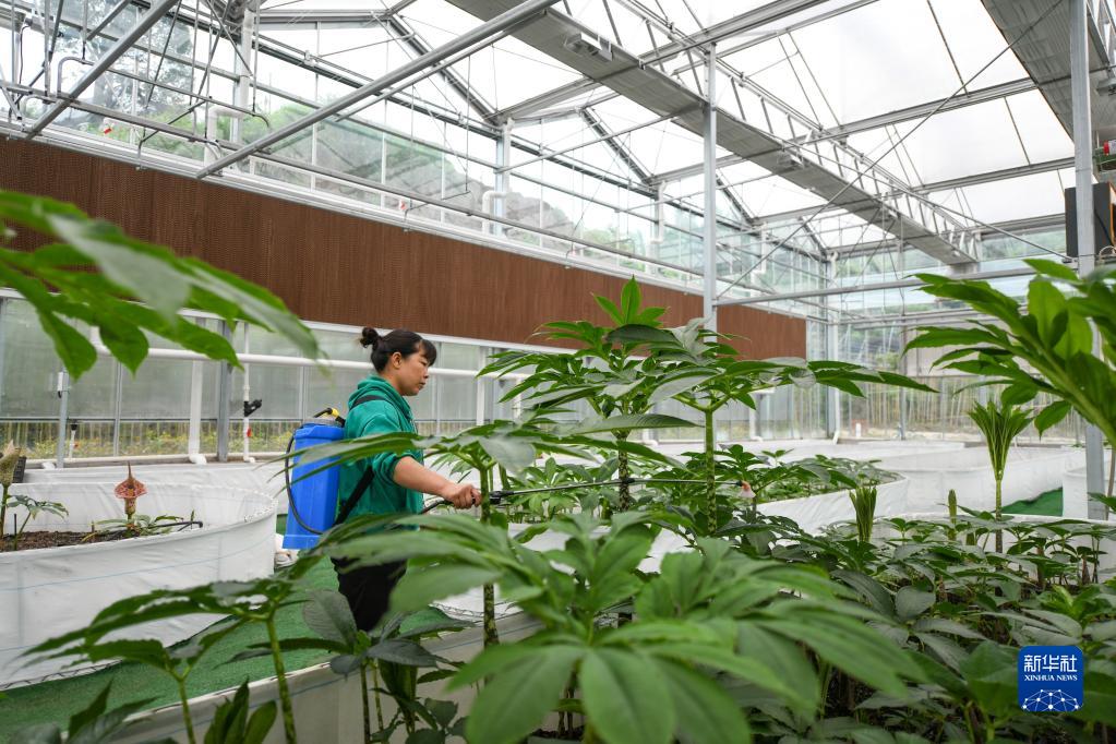 5月26日,在沐川縣的魔芋科技示范園內,農戶(hù)在進(jìn)行魔芋種植管理。