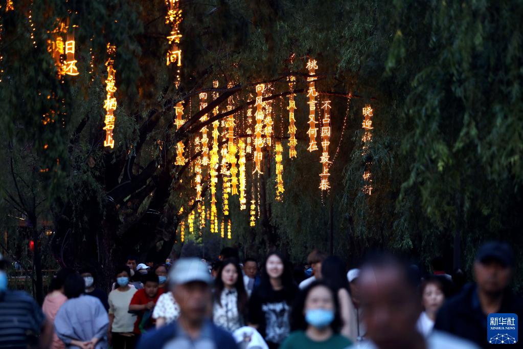 近日,沈陽(yáng)市萬(wàn)泉公園打造的一條詩(shī)詞漫道成為游客和市民的網(wǎng)紅打卡地。每當夜幕降臨,幾十首古詩(shī)詞彩燈在這條300余米道路的樹(shù)梢枝頭熠熠閃爍,以詩(shī)入景,一步一詩(shī)。