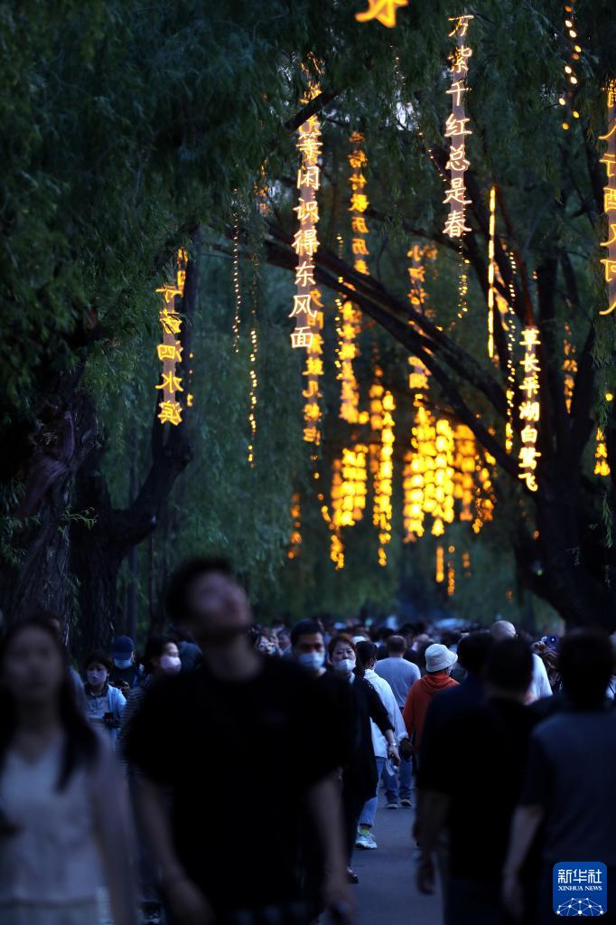 近日,沈陽(yáng)市萬(wàn)泉公園打造的一條詩(shī)詞漫道成為游客和市民的網(wǎng)紅打卡地。每當夜幕降臨,幾十首古詩(shī)詞彩燈在這條300余米道路的樹(shù)梢枝頭熠熠閃爍,以詩(shī)入景,一步一詩(shī)。