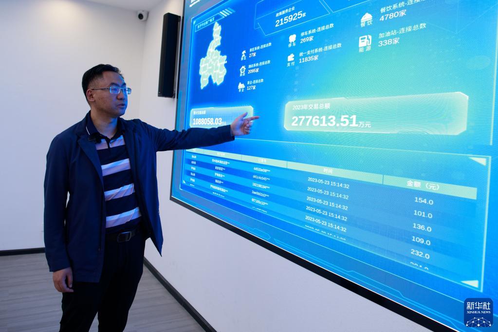 5月23日,工作人員在黔南州智慧黔南安全運營(yíng)中心介紹“數字底座”平臺運行情況。