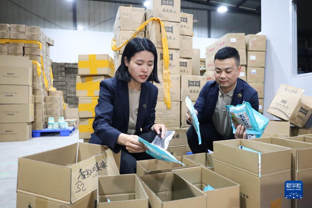 5月26日,在位于蘭州市的舌尖尖居家牛肉面倉儲中心,工作人員打包居家食用牛肉面產(chǎn)品準備發(fā)貨。