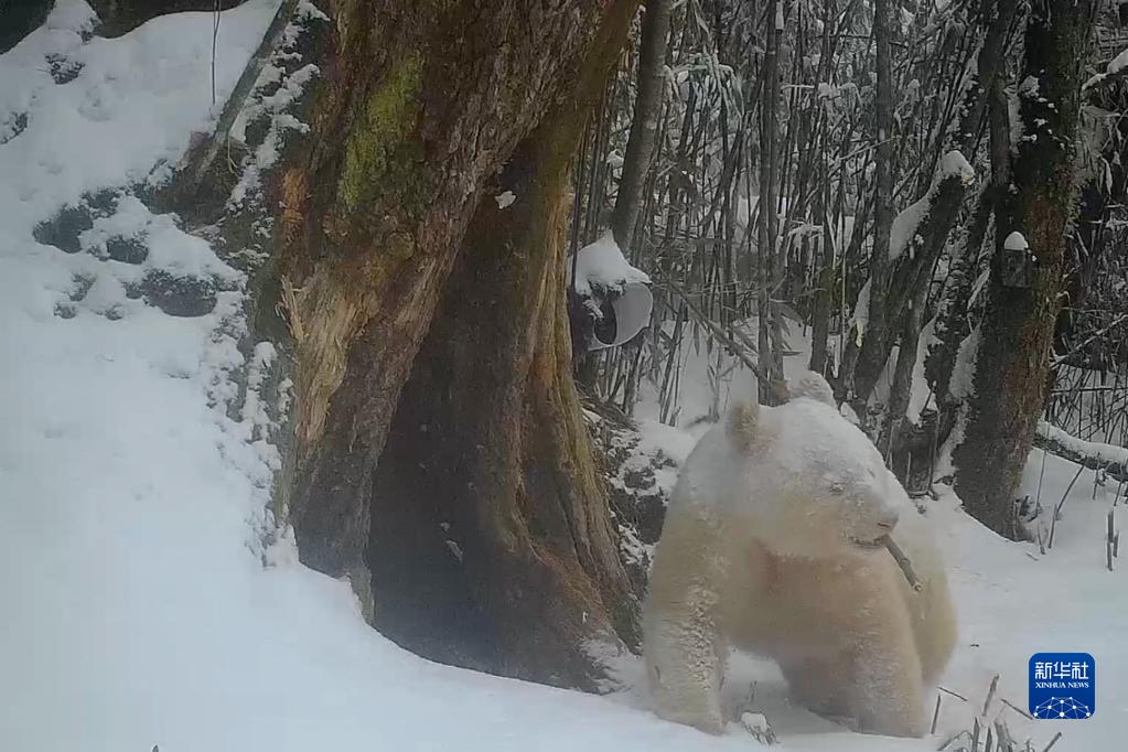 紅外相機拍攝到的白色大熊貓活動(dòng)畫(huà)面。