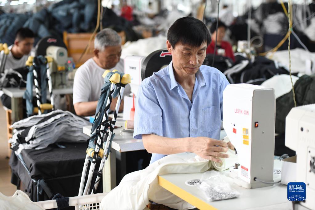 5月25日,山東省日照市莒縣福利服裝廠(chǎng)工人在趕制訂單服裝。