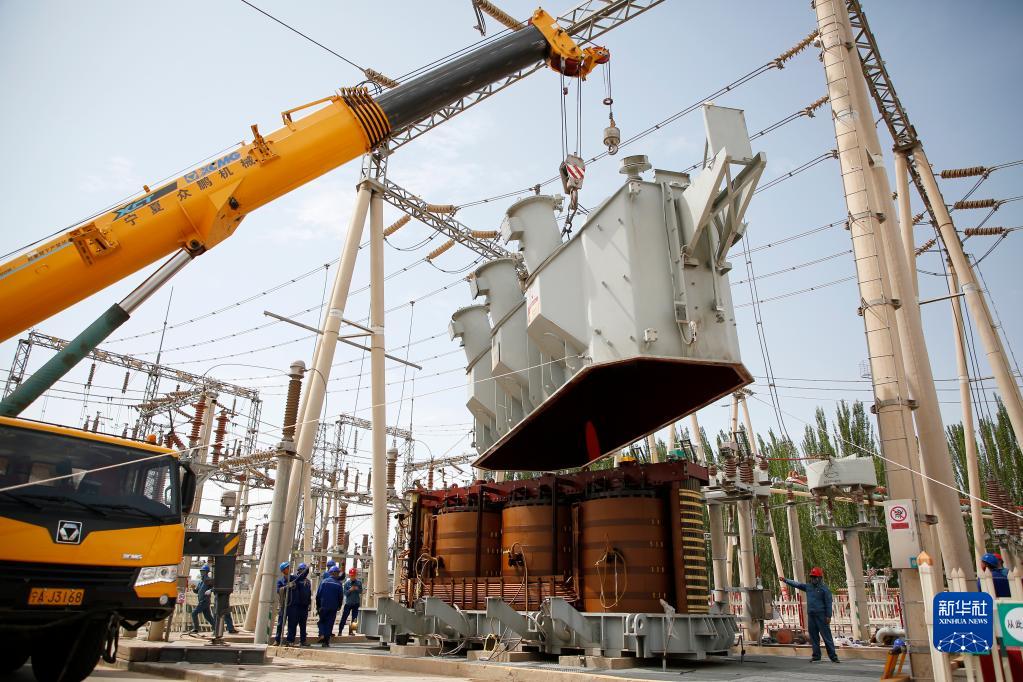 5月27日,電力工人在工程現場(chǎng)進(jìn)行檢修作業(yè)。