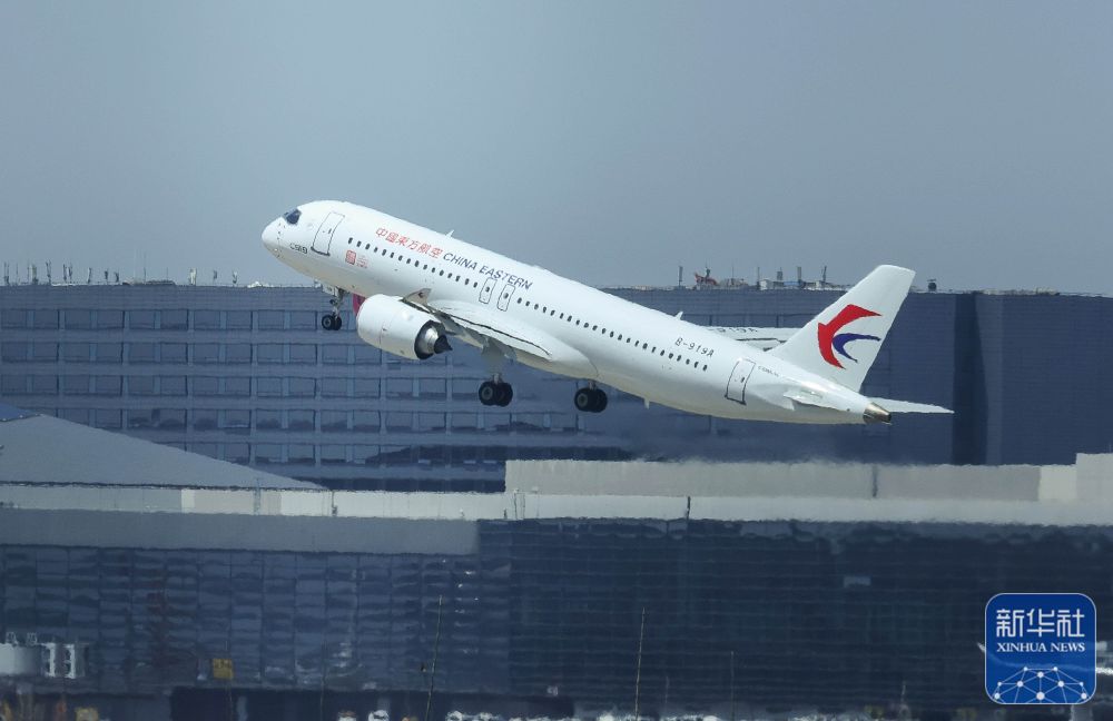 5月28日,C919首個(gè)商業(yè)航班東航MU9191從上海虹橋國際機場(chǎng)起飛。新華社發(fā)