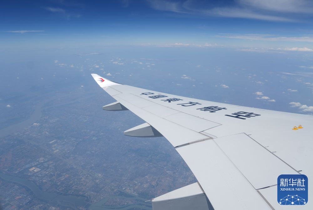 5月28日,C919首個(gè)商業(yè)航班東航MU9191在空中飛行。新華社記者丁汀攝