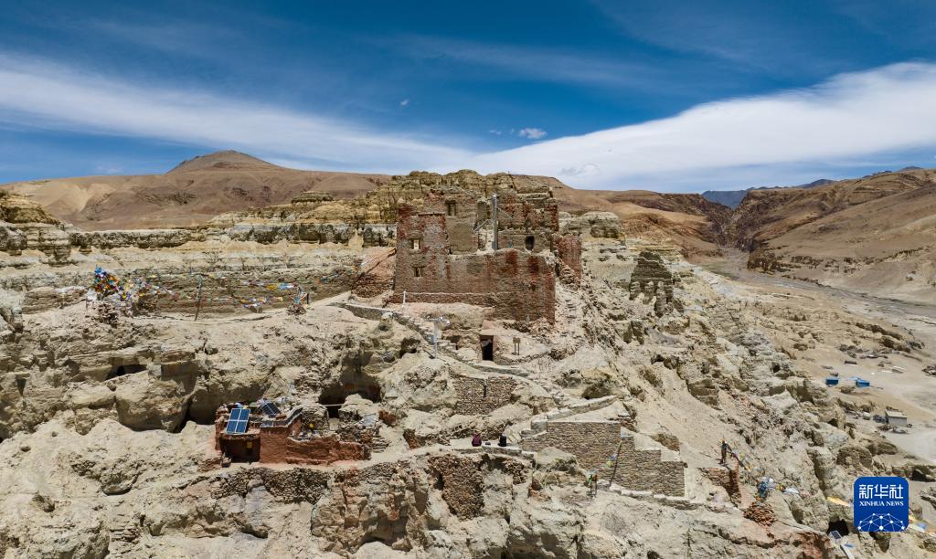 空中俯瞰皮央石窟全景(5月26日攝,無(wú)人機照片)。