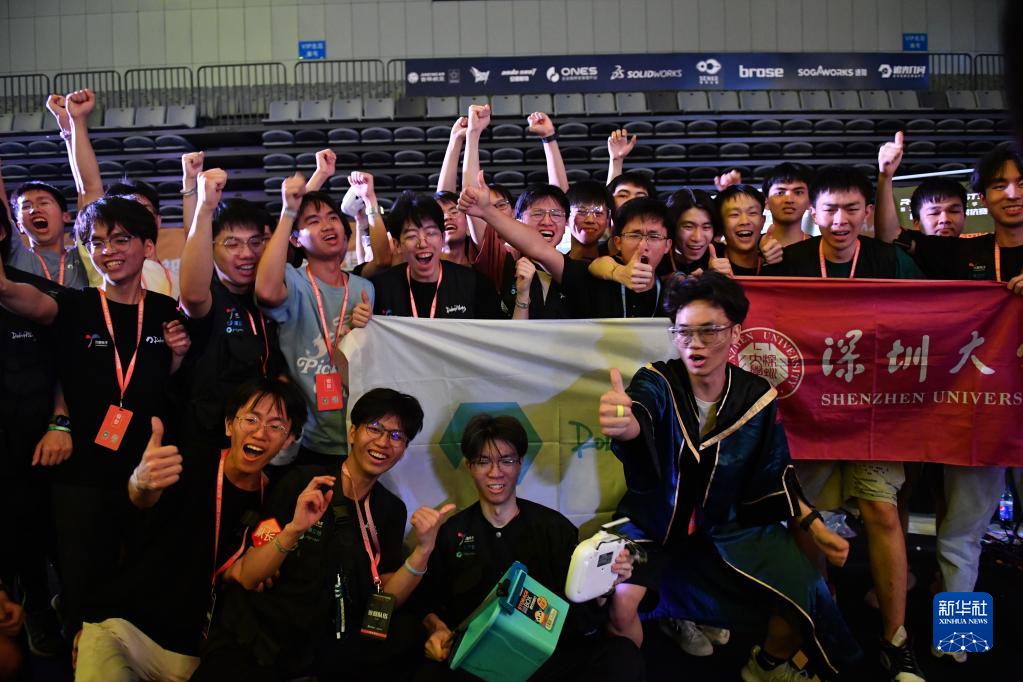 5月28日,深圳大學(xué)RobotPilots戰隊隊員在比賽結束后慶祝勝利。