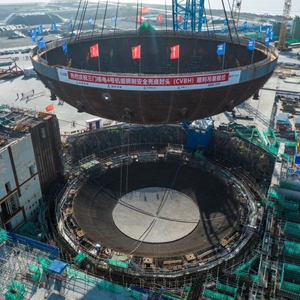 浙江三門(mén)核電二期工程4號機組核島鋼制安全殼底封頭吊裝就位
