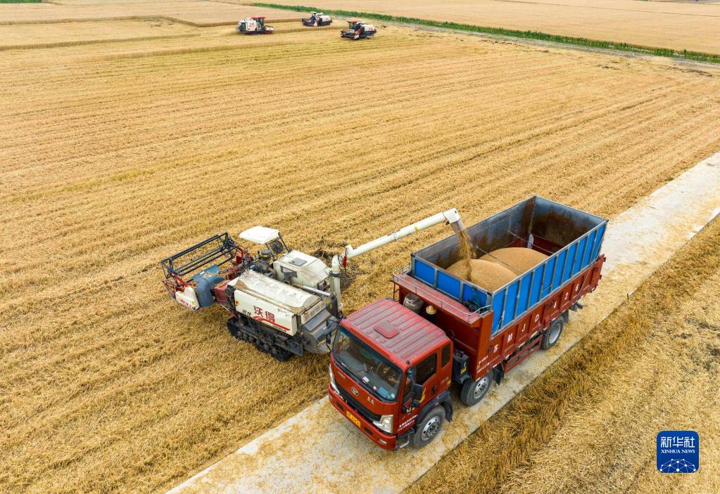近日,江蘇省泰州市255萬(wàn)畝小麥陸續進(jìn)入收割期,當地農民搶抓晴好天氣加緊收割。農機在田間穿梭,構成了一幅美麗的豐收圖畫(huà)。