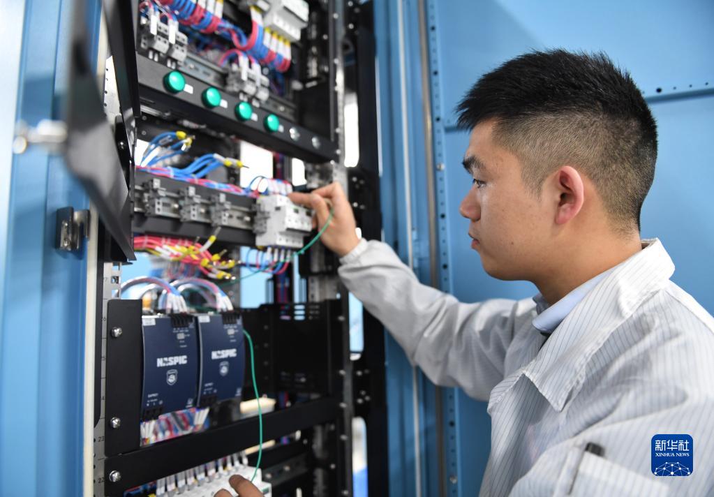 3月3日,在龍鱗系統生產(chǎn)基地,技術(shù)員在裝配龍鱗系統機柜。